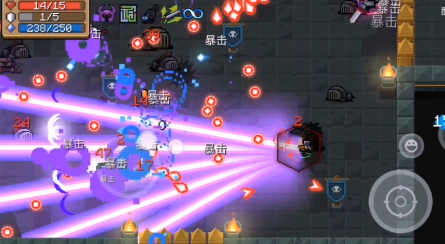 游戏中的紫光剑,其合成方法是需要同时获得光剑红与光剑蓝这两把基础武器。合成过程并非在锻造台直接制作,而是需要你在地牢冒险中手动操作。具体方式为,先确保身上装备着其中一把光剑,然后在关卡内拾取另一把对应的光剑,它们便会自动融合为光剑紫。光剑红和光剑蓝可以通过地牢冒险时开启宝箱、从商人处购买,或者在大厅的锻造台上消耗材料预先打造出来。