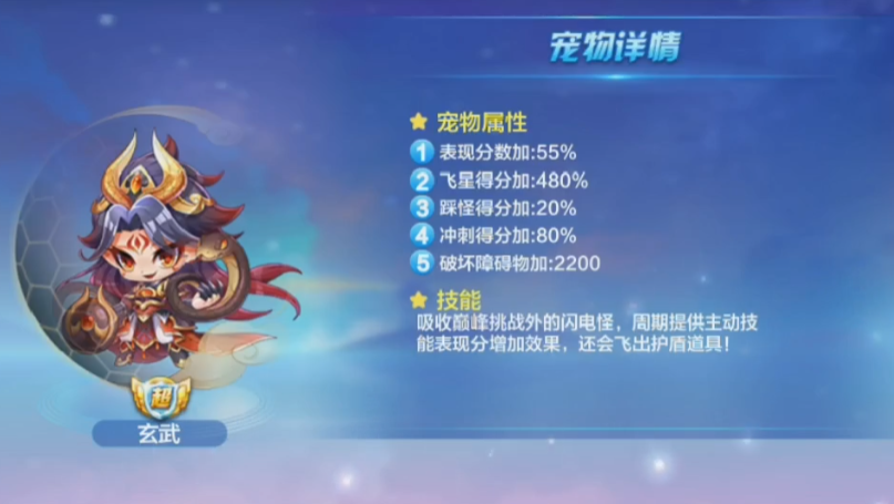 宠物与精灵的搭配需要起到补充爆发或提供关键时刻保命能力的作用。宠物方面,超神宠玄武是优先考虑的选择,其破坏积分很高,并且可以消除巅峰挑战外的所有闪电怪,在减少生存压力的同时不影响破坏得分。精灵则可以选择金丝茉莉,它可以在角色冲刺的时候增加表现分,进一步放大得分效率。选择拥有飞星加成属性的宠物,也能进一步放大睚眦流星雨带来的海量分数。