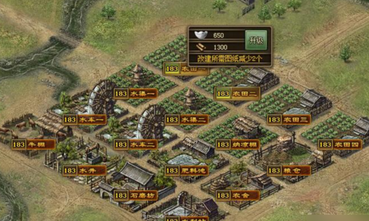 屯田主要提供粮食、木材、石材和铁矿等基础资源,同时能让武将积累经验升级,并借助仓库功能保护资源安全。资源产出是屯田的核心功能,屯田区内建有农田、伐木场、采石场和矿场等设施,专门生产粮食、木材、石材和铁矿,这些资源是升级建筑、招募士兵和研发科技的必要条件,没有它们帝国发展就会寸步难行,通过升级这些建筑可以直接提高产量和效率,满足你日益增长的需求,武将驻守在资源建筑上还能进一步提升生产效率,让你的资源积累更加稳定和快速。
