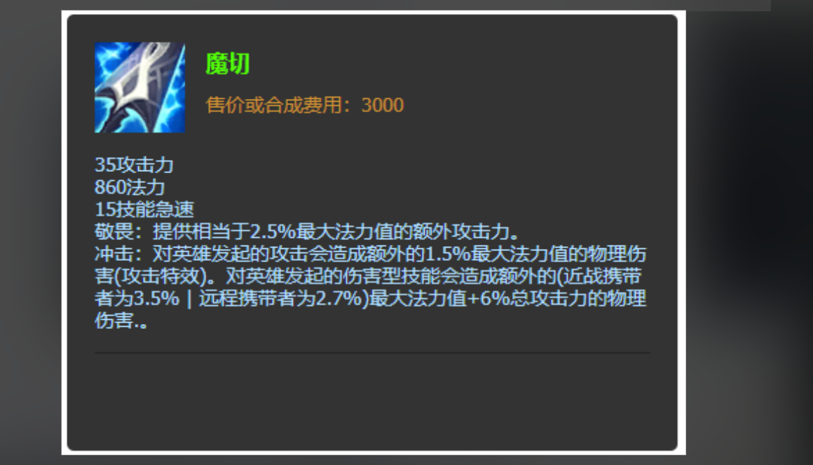 破魔切其实就是咱们常说的魔切这件装备,它在英雄联盟手游中扮演着法力值增益的核心角色,专门为依赖技能输出的英雄设计,能帮助你在释放技能后触发额外伤害或治疗效果,从而在战斗中占据优势。当你玩那些需要频繁丢技能的英雄时,魔切就像个贴心助手,让咱们的输出更持久、更高效,尤其在中期团战中作用突出。它不只提升法力值,还能转化成实际战力,是很多法师和近战英雄的必备选择。
