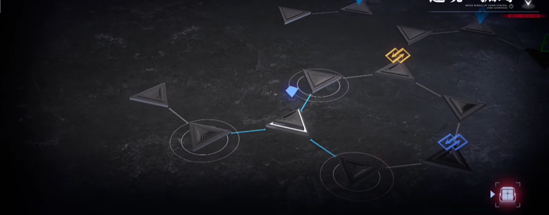 本关的核心解密机制在于正确使用九个传送点,其运作遵循特定的颜色序列。依次选择黄色、黄色、绿色、蓝色、蓝色、绿色、绿色的传送门即可完成整个解密流程。这些颜色对应的机关分布在不同岛屿上,你需要通过点击敌方出生点来查看行经路线和怪物数量,并据此调整角色站位,以实现最优的作战效果。战斗中部分较强怪物拥有核心弱点,其数量显示在血条下方的菱形标志中,击破核心可以打断敌人的引导技能,而有些怪物的核心被击破后若未及时将其消灭还会再生,这些战斗机制也需要在探索过程中妥善应对。
