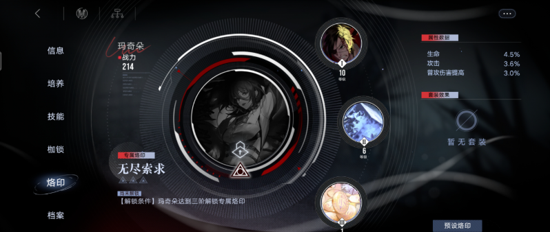 角色培养与烙印搭配直接影响通关效率,破核角色如白逸、雷比尼斯优先升级破核技能,输出角色诺克斯、曜侧重提升AOE与爆发能力,治疗角色艾瑞尔、安保证群体治疗与解控能力。烙印选择上,输出角色带增伤与暴击烙印,破核角色配破核增伤烙印,治疗角色带治疗增效与回能烙印,辅助角色选全队攻击加成烙印。日常推图可三倍速挂机,高难关卡需手动操作,灵活使用局长权能,失败后快速重开调整策略,不消耗次数,逐步优化通关流程。
