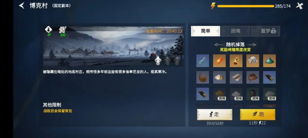 保暖措施绝对不能马虎,博克村比营地更冷,饥饿值和温度过低都会导致失败。多带些熟食和保暖衣物,烹饪架做的热食能有效御寒。副本里的废墟可以用铲子清理,虽然不会给奖励道具,但能通往平时去不了的地方。密室里有宝箱和敌人,击败敌人能拿经验,找到宝箱则能获得各种素材。中央深处会遇到精英BOSS永夜执行者,它的攻击都是前方扇形范围,记得绕到背后输出。