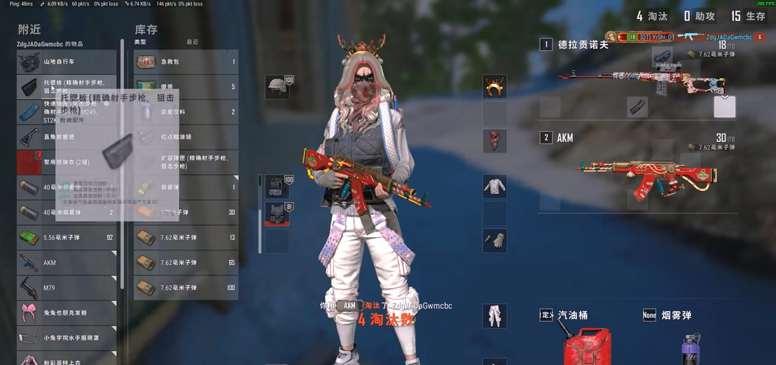 AKM是98K的经典搭配之一,两者均使用7.62毫米弹药,极大简化了弹药管理问题。AKM的高单发伤害与98K形成互补,适合中近距离的快速爆发战斗。尽管AKM的后坐力较大,但熟练的玩家可以通过压枪技巧弥补这一缺点。AKM在装配高倍镜后也能临时充当连狙使用,进一步提升了战术灵活性。这种搭配适合偏好高伤害输出的玩家,尤其是在资源有限的地图中表现突出。