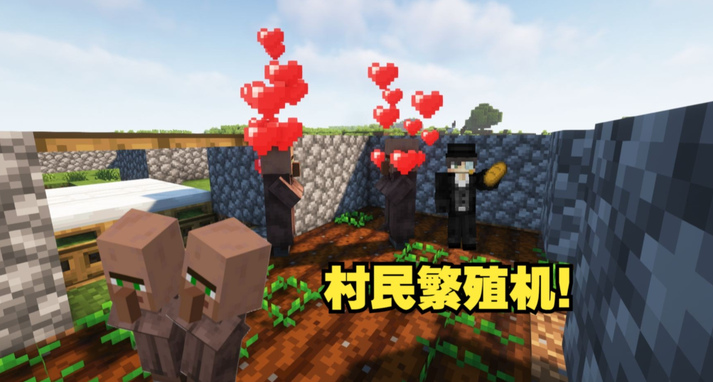 人工繁殖村民需满足三个基本条件:至少两张相邻的床、充足食物供应以及安全封闭的空间。农民职业村民会主动收割并分享作物,这是最稳定的食物来源。繁殖过程中每对成年村民需要12个面包或3-12个胡萝卜/马铃薯/甜菜根,食物需通过投掷方式直接交给村民。新建造的居住空间需确保每张床都有2格高的站立空间和1.5格宽的通行路径,否则会阻碍繁殖行为。新生成的幼年村民20分钟后会成长为可交易的成年个体。