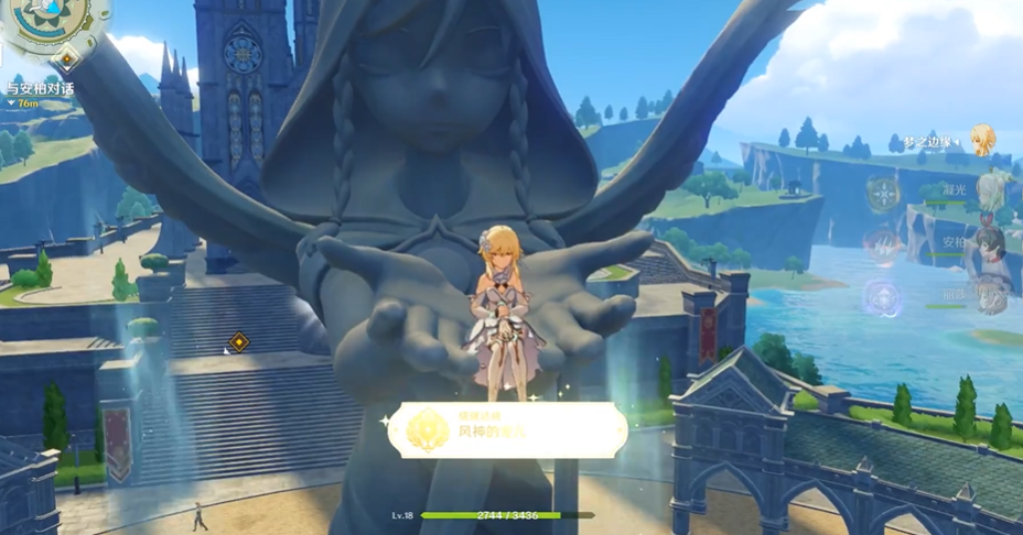 关于这个成就的背景故事挺有意思的,风神像手里捧着蒲公英籽的设定其实和蒙德城的文化有关。在游戏里咱们帮葛罗丽播撒蒲公英籽的任务也和这个成就遥相呼应,算是制作组埋的小彩蛋。坐在神像手心的时候视野特别好,能看到整个蒙德城的风景,特别适合截图留念。