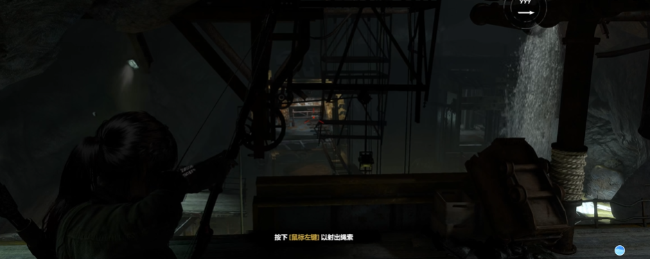 从小平台起跳,到达对面的长平台,从长平台左侧向上攀爬。这里有一个隐秘的拉绳机关,拉动后可以将小矿车推出。回到长平台,将矿车连接到附近的绳柱上。这一步骤需要精确操作,确保矿车与绳索的连接点正确,否则无法触发后续机制。连接完成后,拉动矿车使其撞击水流,从而改变水流方向或清除障碍。