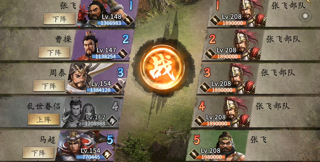武将选择与套装搭配是通关的核心要素。太史慈作为首发武将必须佩戴朱雀套装,利用其两次战法释放的特性抵挡敌方前两轮战法攻击。典韦需装备驱虎套装提升山地地形作战能力,许褚使用烛龙套装增强控制效果,周泰则依靠真霸下套装的高防御属性承担最终对决张飞的任务。这套配置能最大限度发挥各武将特性,弥补张飞副本的地形劣势。