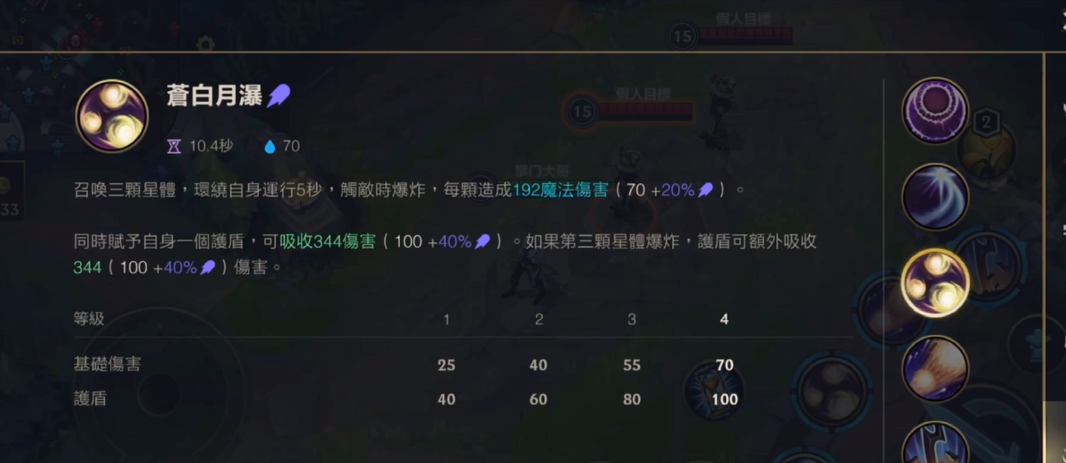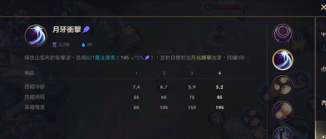 皎月的被动技能让她每释放技能后三次普攻获得攻速加成,第三次普攻会造成范围伤害。对线期可以卡被动层数,利用小兵作为踏板进行消耗或撤退。1技能弧形范围较难掌握,需要多练习预判释放。2技能的护盾值会随法球引爆次数增加,尽量让三颗法球都命中敌人最大化收益。3技能突进后若移除月光标记会大幅减少冷却,这是灵活位移的关键。