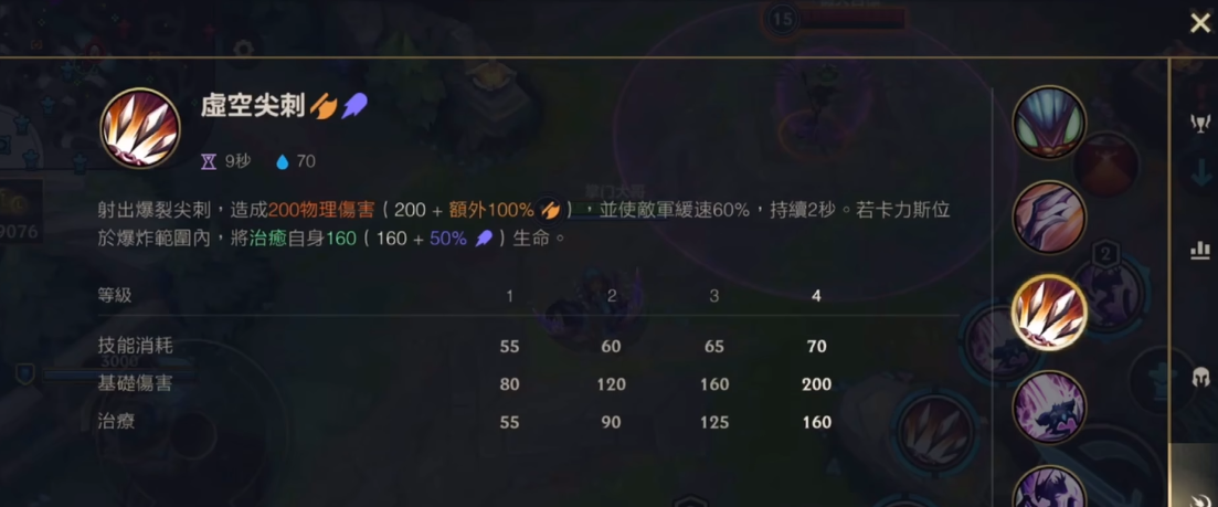 Q技能品尝恐惧是主要输出手段,对孤立目标能造成翻倍伤害,进化后还能增加攻击距离并返还冷却时间。W技能虚空突刺既能远程消耗又能回血,进化后变成三发尖刺附带强力减速。E技能跃击是核心位移,进化后跳跃距离大幅增加且击杀刷新冷却,这可是收割残局的灵魂技能。R技能虚空来袭提供隐身加速,进化后能连续隐身三次,灵活运用可以戏耍对手。