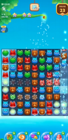 得重点操作双鸟特效相遇的部分。使用强制交换道具,把上方的魔力鸟和银币交换位置,然后击打银币就能让双鸟相遇,完成一次强力清屏。这种操作至少要重复两次,才能确保三星通关,因为一次清屏可能不足以覆盖所有障碍。注意顶端区域的动物不会自然掉落,必须依靠特效来触及,所以多创造魔力鸟或爆炸包特效是关键。过程中保持专注,别被毛球的跳动分散注意力——优先把毛球转化为灰色状态,减少它们捣乱的机会。