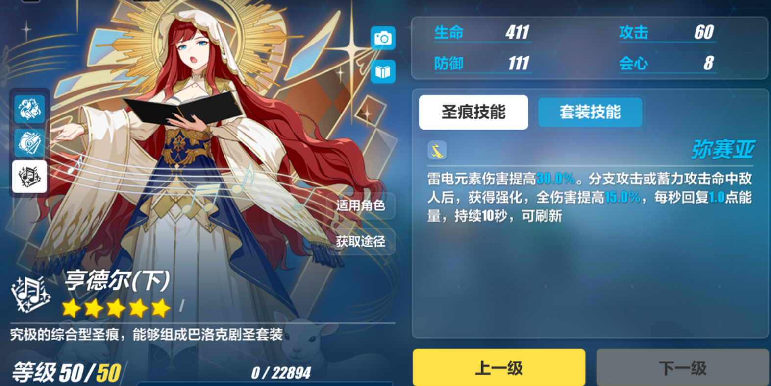 武器选择上,专属双枪往世的华章与她契合度最高。这把武器不仅能随她的QTE自动触发武器主动技能,让战斗流程更紧凑,还能进一步强化全队的雷电元素伤害。圣痕方面,亨德尔套装是最优推荐。这套圣痕能大幅提升她的雷电输出,其强化在场角色的特性尤其适合与需要驻场的主C配合,显著放大团队整体雷电伤害。亨德尔可通过游戏内的万象虚境锻造获取,对资源有限的伙伴们非常友好。