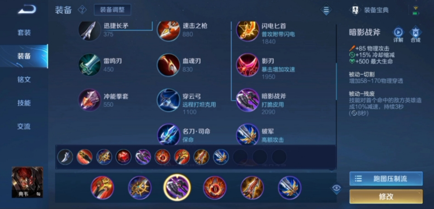 中期是咱们发力的黄金期,暗影战斧和宗师之力必须安排上。斧头减冷却加穿透,砍人像切菜,宗师更霸道,用完技能加速追着锤,还能补点暴击,配合典韦的技能连招,脆皮基本扛不住一套。这时候如果对面物理输出猛,早点掏反伤刺甲准加防又反伤,站着对撸都不虚,特别是遇上射手或刺客,反弹的伤害能让他们自己先哭。