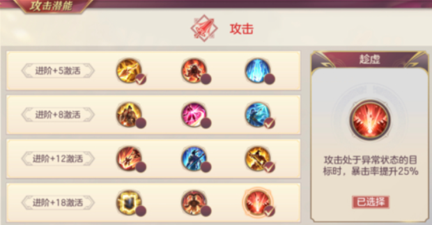 阵容搭配方面,马超适合放在前排快速切入战场。他的潜能选择也要考虑队伍整体需求,如果队伍缺乏爆发,就侧重战意和叠浪;如果需要收割能力,就主加摧折。马超的潜能不是固定不变的,可以根据对手阵容灵活调整,比如面对防御型阵容时可以适当增加破盾潜能。