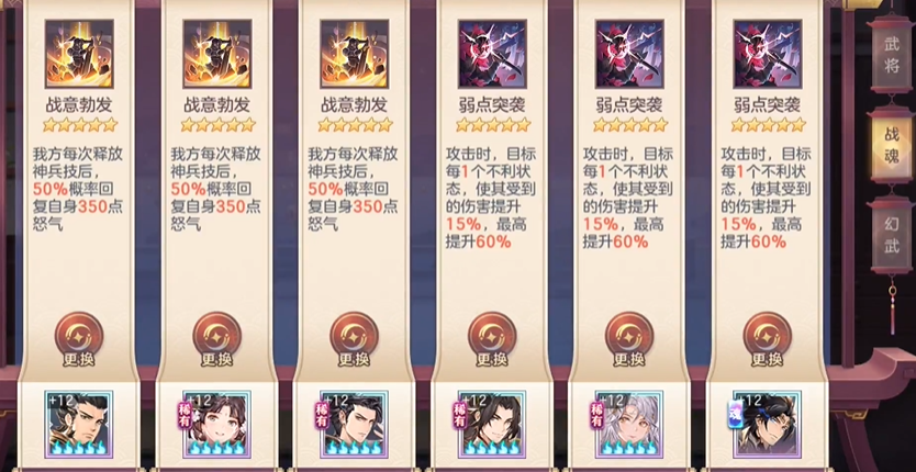 战魂搭配方面,一号位坦克必须装备连携加护战魂以提升团队生存能力,其余位置可根据武将特性选择输出或辅助类战魂。神兵配置无需过于复杂,重点确保一号位的防御强度即可。在战斗过程中,敌方第一回合的爆发伤害是最大威胁,若一号位未能有效抵御则会导致阵容快速崩溃,因此需通过潜能加点强化防御属性,优先选择受击回怒、免伤等生存向潜能,输出型武将则可适当搭配暴击命中属性以提升伤害总量。