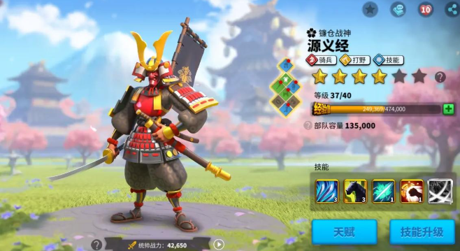 源义经与曹操的组合是经典骑兵配置,源义经的高爆发技能与曹操的机动性互补,前者弥补曹操输出上限,后者解决源义经移速短板。贝利撒留则提供非战斗状态下的行军加速,与曹操共用骑兵天赋,适合矿区游击或快速扫田。腓特烈虽无兵种天赋,但能提升部队容量,在持久战中表现稳定。需注意副将等级需通过主将经验值提升,可通过战斗或喂食经验食粮加速培养。