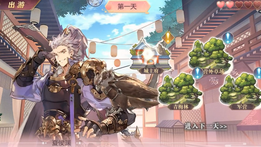 要达成夏侯渊出游的完美结局,关键在于三天内所有选项的精准选择。第一天选择顺序为1121,第二天选择1112,第三天选择空221。这些数字对应左上、右上、左下、右下的选项位置,严格按此顺序操作即可确保完美结局。