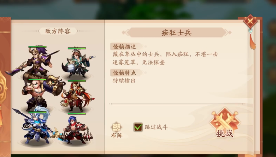 三国乱变是一个需要战力达到1.5亿以上才能挑战的关卡。地图以草地为主,道路隐蔽,需要先找到火把道具照明。火把通常藏在系统提示的位置,拿到后对着草丛使用就能烧出一条路。清理完路上的怪物后,会看到一座桥,桥前站着曹操,击败他周围的小兵才能对话。他会告诉你桥后有宝物,拿到后可以选择离开或继续探索小地图奖励。