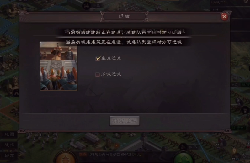 迁城需要满足多项硬性条件:首先需攻占目标区域相邻的11块无建筑空地,形成完整的迁城区域;其次玩家名声值需达到5000点以上;同时城内所有部队必须处于待命状态,不得有外出征战的队伍;城内建筑不得处于升级状态;还需确保势力未被其他玩家俘虏。这些条件缺一不可,建议提前规划准备。
