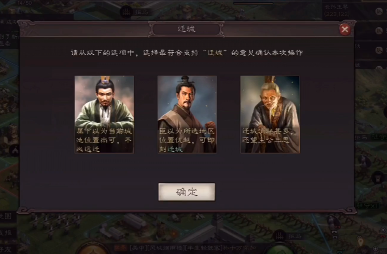 操作流程上,首先点击主界面下方的政厅选项进入内政处理界面,选择君主功能后进入城池信息界面,点击迁城按钮选择已满足条件的目标区域。系统会进行自动校验,确认符合所有条件后即可完成迁移。土匪玩家(侠客军)的迁城冷却时间为48小时,比正规军少24小时,这是其机动性优势之一。