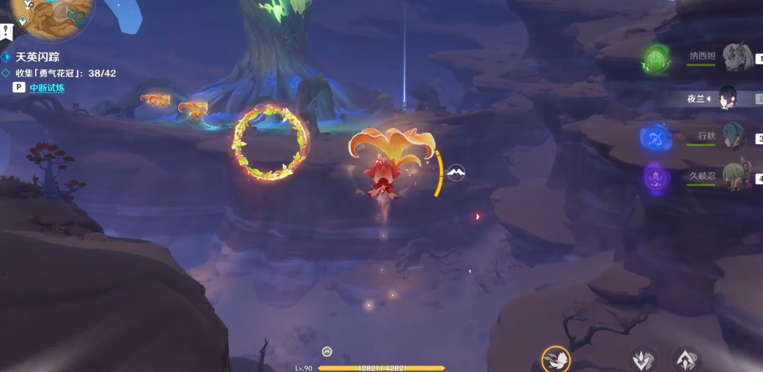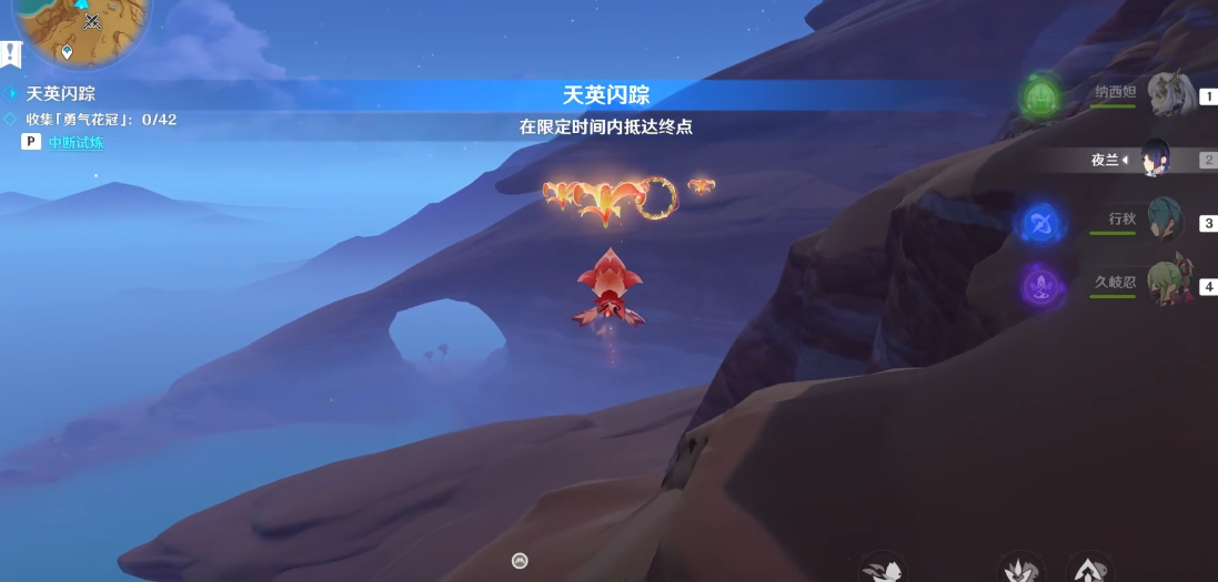 在试炼过程中,靠近光辉花环可以借助其力量向前冲刺一段距离,同时短暂扩大收集勇气花冠的范围。这一机制是提高评分的关键,玩家需要规划好飞行路线,尽可能多地利用光辉花环进行加速。冲刺不仅能节省时间,还能帮助收集更多勇气花冠,因此要优先寻找并利用这些花环。