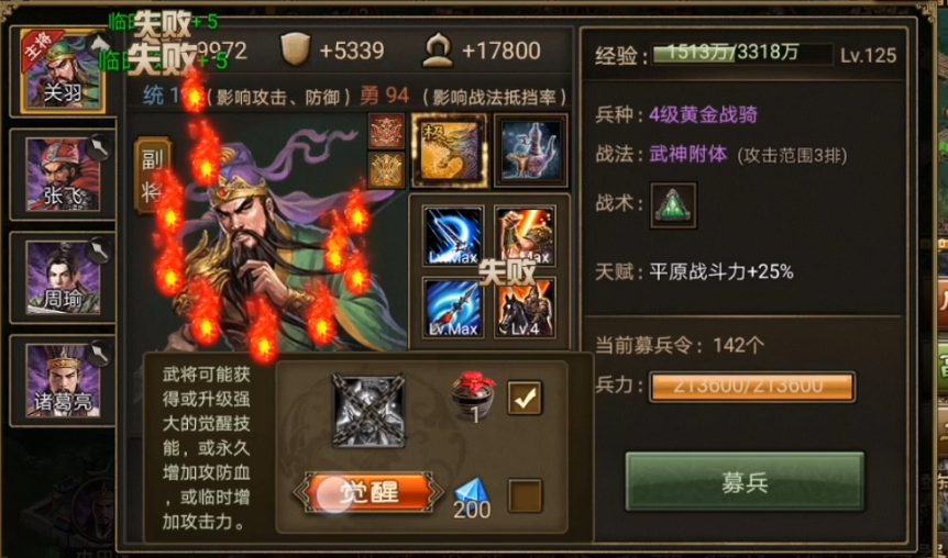 这关对手兵力堆到了194万,技能能打你四排兵,最头疼的是貂蝉的技能在这儿完全失效,而且对手的被动破甲效果特别烦人,直接削弱你的攻防能力。整体难度比213级简单点,但比211、212还是要吃力不少。想稳稳过关的话,至少得备好9件珍宝、2件红甲装备,再搭配1-2件流光御宝;战车等级最好达到10/10/10/7,黄月英醒不醒问题不大,但阵法必须带特效,尤其金色兵书固若金汤几乎是刚需。