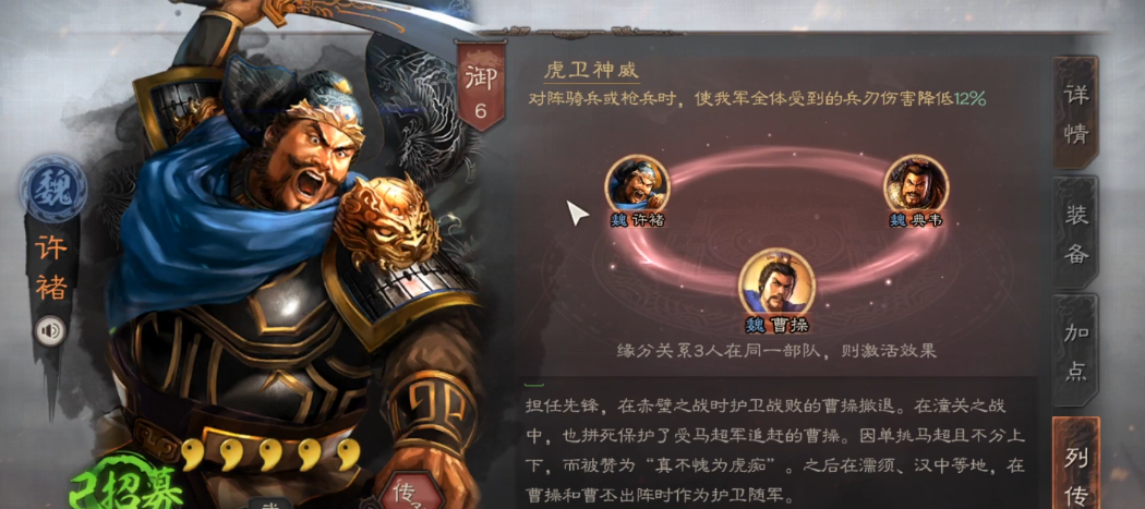魏盾是一种以魏国武将为核心的盾兵阵容,专注于通过高减伤和持久战机制来消耗对手。这一阵容的核心思路是依靠武将的防御属性和特定战法,在战斗中逐步削弱敌方兵力,而非依赖爆发输出。魏盾的典型构建围绕典韦等武将展开,他们擅长反击和生存,能在长时间交战中积累优势。玩家选择魏盾时,需注重队伍的协同性,确保减伤效果最大化,以应对各种战场环境。这种阵容适合偏好稳健打法的用户,尤其在资源有限的开荒阶段或中后期持久战中表现突出。