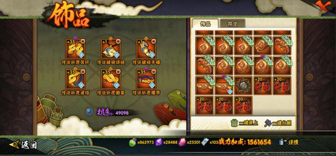 赤魂耳环是个特殊存在,传说品质的赤魂耳环分解后返还的保护符比其他部位多,建议留着后期刷保护符用。平时可以存些秘术之尘,等遇到属性好的紫色饰品再集中强化。90级前不用在过渡饰品上投入太多资源,重点攒材料为100级后的落岩套装做准备。记住饰品要跟着抗魔值走,达标就换新,别在低阶饰品上消耗过多保护符。