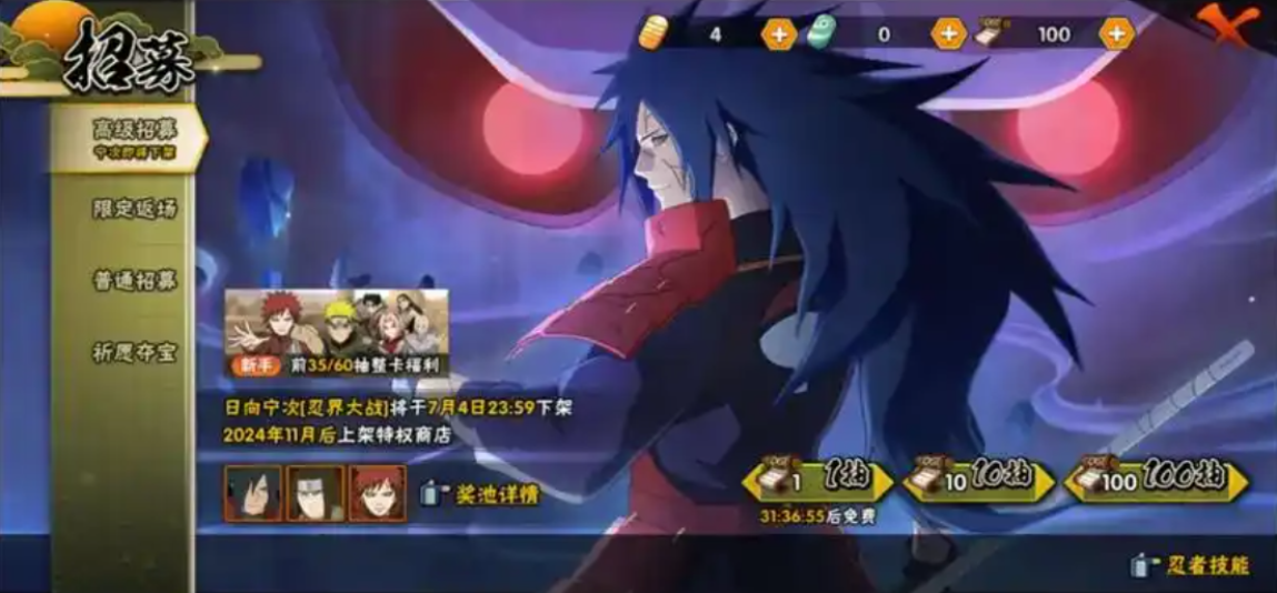 忍者培养方面,后期就别在商店里买普通忍者啦,攒金币等高级招募更划算。高招忍者强度高,首付一定要攒够,A忍50抽、S忍100抽,保底机制能帮你稳定拿到碎片。幸运夺宝活动也挺良心,4000金币换10片A忍碎片,比商店一片片买省多了。平时多刷精英副本,白嫖忍者碎片才是王道。