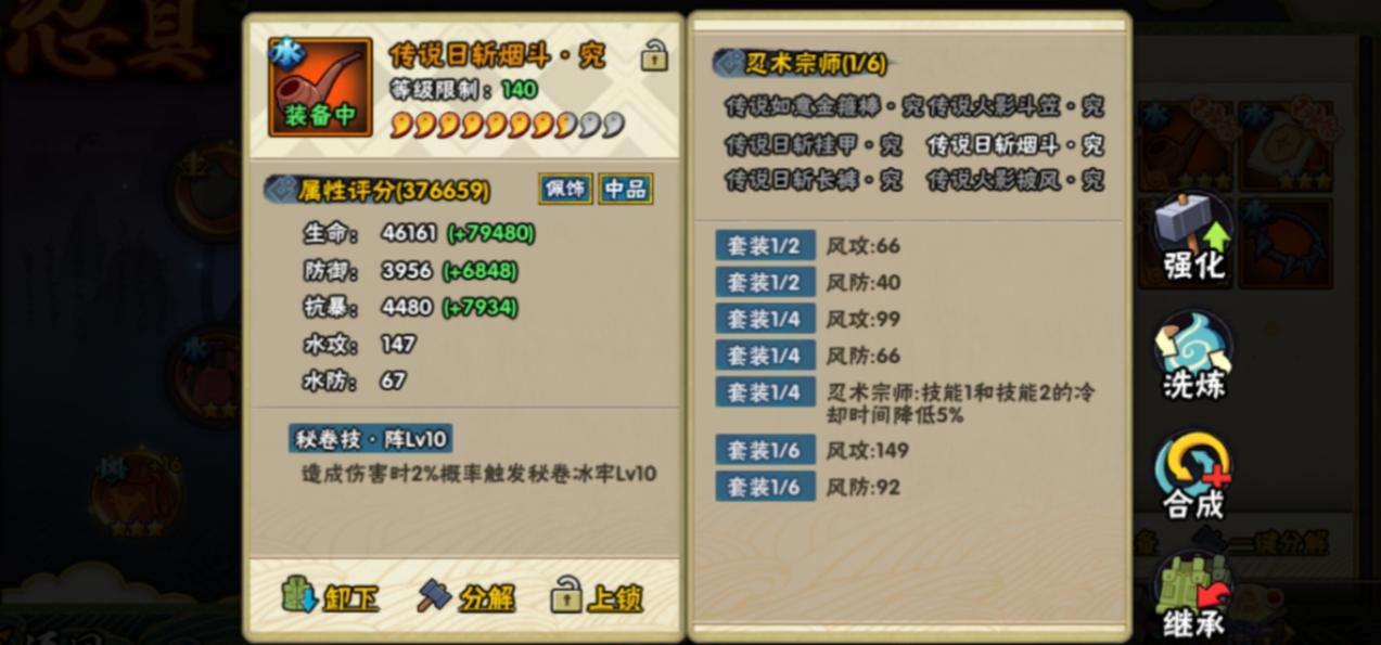 忍具套装的选择直接影响战斗表现和角色成长。目前公认的综合实力最强的忍具套装是无尽痛楚究套装,尤其适合追求高爆发输出的玩家。这套忍具的核心优势在于其特殊的套装效果:穿戴四件后能显著提升晓组织忍者的奥义技能伤害,而完整六件套更能增加雷属性攻击和防御属性。对于主力使用晓组织角色的玩家来说,这套装备能最大限度发挥角色潜力。