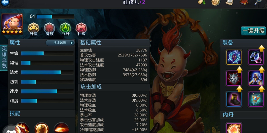 红孩儿作为乱斗西游中爆发能力极强的法术输出型角色,核心属性应优先堆叠暴击率和冷却缩减。暴击率能显著提升技能连招的爆发伤害,而冷却缩减则确保技能释放频率,使输出节奏更流畅。武器推荐选择别情离恨,大幅提升暴击率;头盔贪狼面具进一步强化暴击效果;鞋子荒禅雪足提供吸血属性,增强生存能力;衣服月影仙尘则平衡防御与输出。