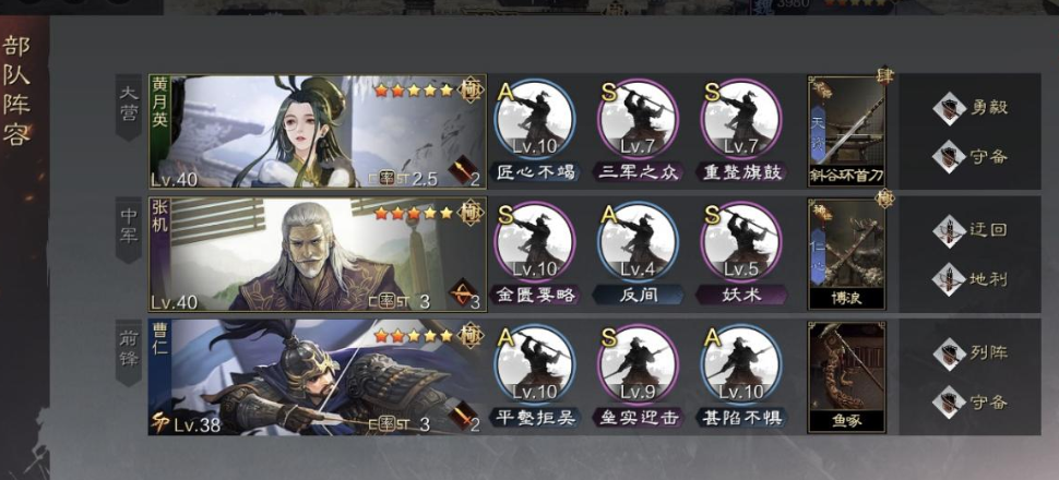 第一种思路是走远程爆发路线,让曹仁当队长,配上甘宁和黄忠这样的远程输出好手,再带个像蒋琬这样的辅助伙伴,蒋琬能持续治疗队友还能提供控制,保障队伍续航。第二种思路适合喜欢近战冲锋的,把曹仁、曹洪和张辽组在一起,曹洪负责吸引火力,张辽负责近身强力输出,最后再配上貂蝉,她能为队友提供增益效果,让整个队伍打起来更灵活更凶猛。第三种思路偏向稳扎稳打,让曹仁带着于禁和钟会这样的防御型伙伴顶在前面,再加上荀彧这种能提升全队攻防能力、还能治疗的强力辅助,整个队伍会非常耐打。