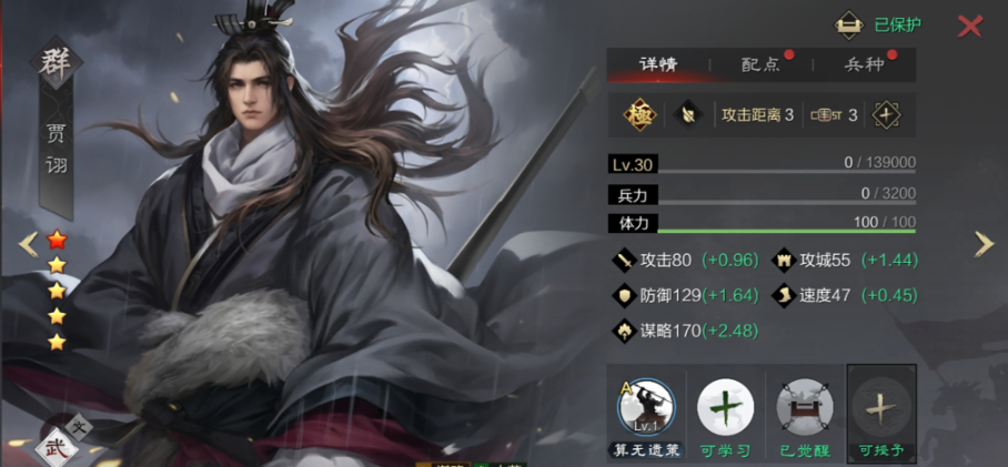 贾诩的战法配置应以最大化其算无遗策的收益及提升自身输出为核心。推荐携带强力主动策略输出战法,以充分利用其高谋略属性。配备具有群体减益效果的战法可与其自带技能形成叠加效应,进一步削弱敌方整体战斗力,使敌方关键武将难以发挥。战法选择应优先考虑发动率与效果强度,确保其能在战斗中持续施加压力。避免选择准备时间过长的战法,以保证其干扰与输出节奏的连贯性。