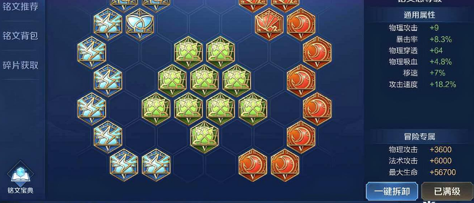 铭文搭配方面,推荐通用高攻速暴击流方案。红色铭文选择10红月,提供攻速和暴击率提升,增强前期压制力;绿色铭文使用10鹰眼,增加物理攻击和穿透,应对坦克类英雄;蓝色铭文搭配5狩猎和5夺萃,平衡攻速、移速和吸血,保证赖线和机动性。对于追求极致暴击的玩家,可调整为红色7祸源加3无双,提升暴击效果,蓝色7夺萃加3狩猎强化吸血。新手若铭文不足,优先凑齐攻速、吸血和穿透属性,如10红月加10鹰眼加5夺萃加5狩猎,作为过渡方案。