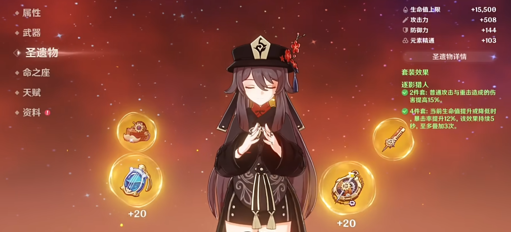 圣遗物选择炽烈的炎之魔女四件套最佳,时之沙主属性根据武器调整,护摩之杖选生命值,匣里灭辰选元素精通。副词条优先双暴与生命百分比,元素充能效率维持在120%左右即可。武器方面五星护摩之杖为专武,四星匣里灭辰对蒸发反应提升显著,决斗之枪则优化暴击面板。命座方面一命解除体力限制质变,六命提供濒死保命机制,但零命即可发挥核心战力。