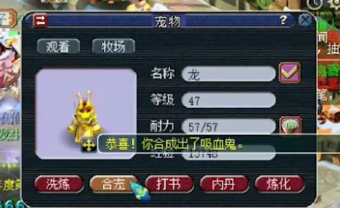 合成一只强力宠物,首先得准备好两只30级以上的宝宝。打开宠物界面点击炼妖,选择合宠功能就能开始操作。合成结果有三种可能:最常见的是获得等级更低但属性点未分配的同类型宝宝;也可能合出各项属性固定为10的野生召唤兽;最倒霉的情况是变成大海龟或泡泡。如果材料中有野生召唤兽,合成结果会更不稳定,建议尽量用宝宝来合成。