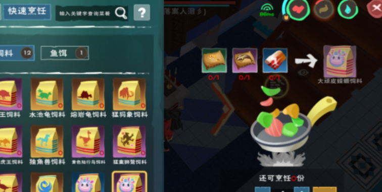 饲料分为基础饲料包和高级宠物饲料两种。基础饲料包特别简单,比如小麦饲料包只需要五个小麦就能合成。但想要制作高级宠物饲料就得费点心思了,不仅需要基础饲料包,还得搭配其他特殊材料。比如黑马饲料要用蓝莲包、鲍鱼和小麦包,而云斑鹦鸟饲料则需要鲍鱼、辣椒饲料包和小麦饲料包。这些特殊材料分布在游戏不同区域,像鲍鱼可以在枯骨山脉右侧的河流里钓到。