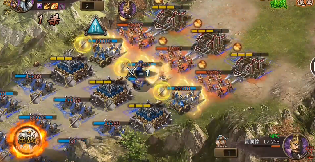 曹操第二个上场,先别急着放战法,用普通攻击撞几轮,最后一排再放战法给黄月英加血盾。这时候要注意观察,等第二个NPC剩一点血的时候,黄月英必须出斩杀才行。黄月英第三个上场,先解决掉残血,运气好的话能吃下第三将的战法,这时候斩杀一定要打出来,不然很难推进到第四个NPC。