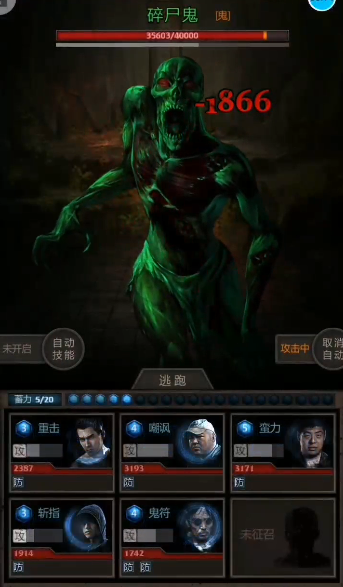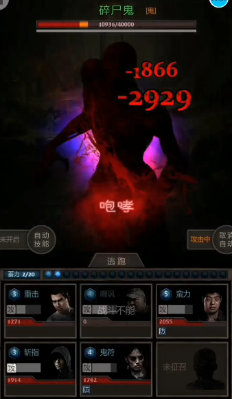建议关闭自动技能功能,手动控制角色释放关键技能。优先使用龙(小哥)的斩指技能进行爆发输出,同时保留治疗角色的技能点用于应对晋昌鬼的强化阶段。当BOSS血量接近50%时,会进入短暂蓄力状态,需集中火力打断其技能读条。若无法打断,则需提前为全员补充血量,避免被后续的范围伤害秒杀。战斗中需注意队伍站位,避免输出角色被优先攻击。