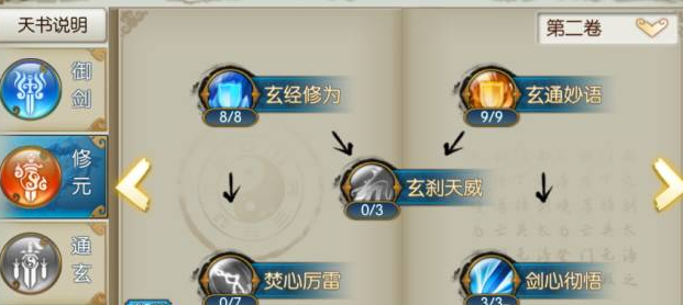 天书选择上,修元系是神剑流的最佳搭配,能强化群体技能的伤害和控制效果。优先点满冰域天机和寒霜化境,这两个天书分别增强盛冰之寒和霜寒雪舞的威力。寒冰烈炎进一步提升定身时间,炼神还虚根据五气朝元等级加命中,虽然神剑流不主堆这个技能,但命中属性对PVP很有帮助。天眷有道对定身目标有额外伤害加成,和盛冰之寒形成完美联动。通玄系天书可以补充单体爆发,比如雷云奇变提升唤雷决伤害,适合喜欢打PK的小伙伴。