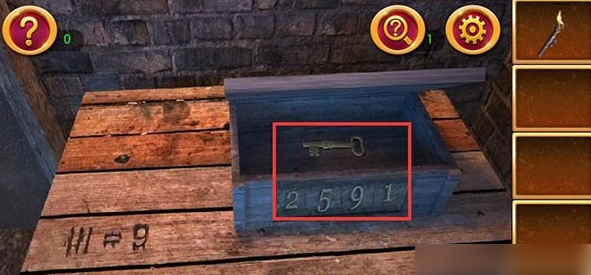 从婴儿的脸开始,依次点开四个小孩的脸,壁画就会自动打开。把之前拿到的剑柄和剑刃组合成一把完整的剑,然后把这把剑插进壁画后面的小孔里。这样,咱们会得到最后一个提示:Ⅳ=1,代表密码的第四位是1。所有提示都齐了,密码就是2591。整个过程要耐心点,别点错顺序。