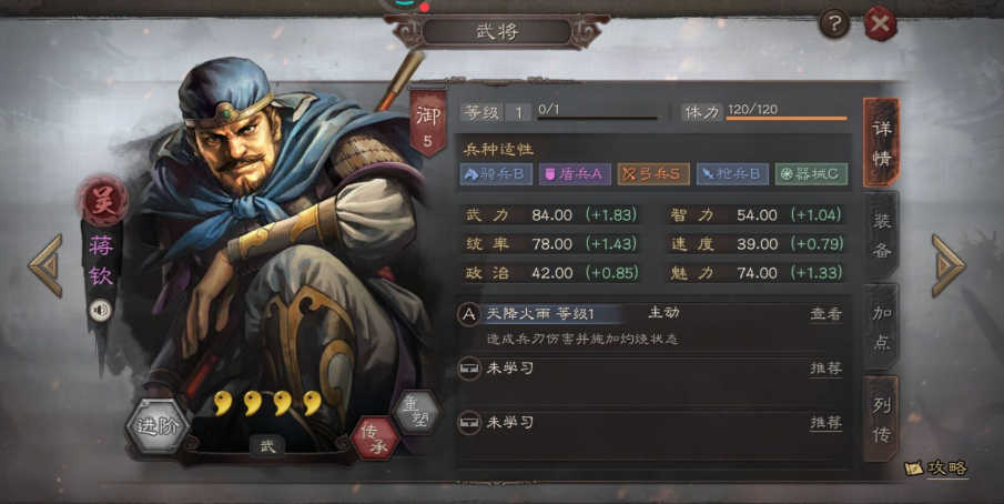 战法配置以主动输出和控制类为主,例如韩当携带强攻或挥砍,蒋钦使用暗藏玄机,徐盛配备避实击虚,如果战法点有限应集中升级主输出角色的战法以最大化伤害,资源管理上优先升级君王殿和军营以增加统御值和兵力上限,同时跟随主线任务解锁奖励,合理分配铜币和战法点避免浪费,并注意士气对战斗的影响尽量保持高士气出战。