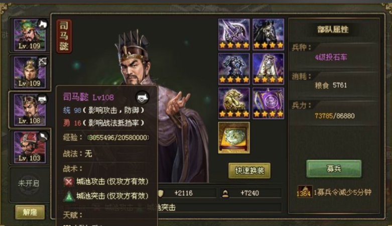 选择武将时优先考虑觉醒武将或高统高勇的紫将,例如关羽、张飞和周泰,这些武将基础属性优秀且技能效果显著,觉醒武将战法释放频率高能有效压制敌方兵力,紫将则凭借高统率