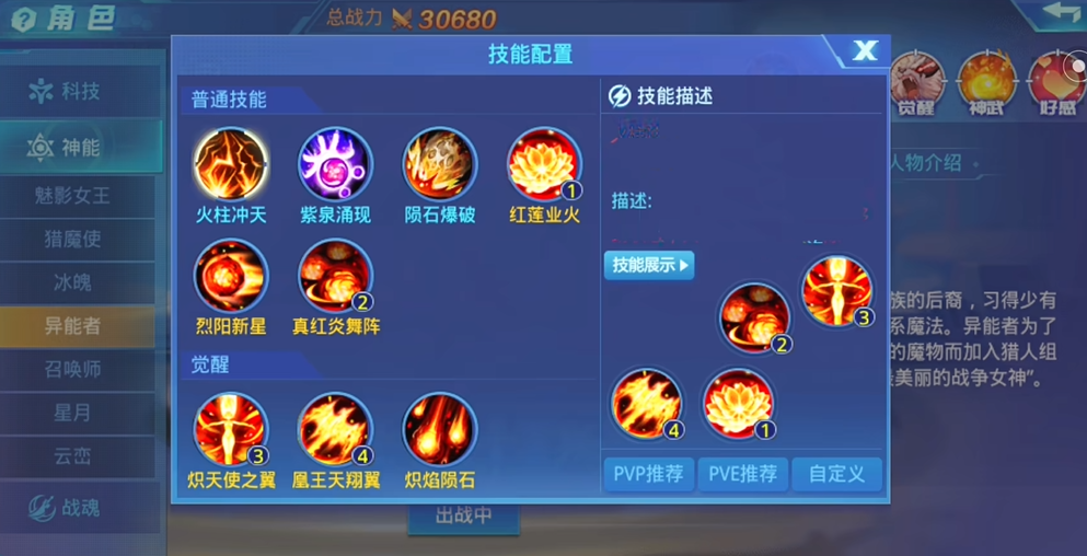技能加点是发挥异能者威力的核心环节。必满且推荐常驻的技能包括:暗之回旋,作为招牌神技,其低消耗、高频率的伤害在副本与竞技场都极为实用;火柱冲天,具备短冷却、高伤害和置空效果,兼顾输出与自保;紫泉涌流作为40级大招,伤害极为可观,是爆发输出的关键;流光盾则完美弥补了异能者防御薄弱的短板,提供减伤的同时反弹伤害,是生存保障。魔晶充裕时可考虑加满雷神之怒(大范围群攻但释放时需注意站位安全)、能量弹(需精准瞄准,高伤潜力大)或火石陨落(高效清图技能)。而闪袭、烈焰冲击、虚无之球等技能在后期作用有限,通常不推荐投入宝贵点数。