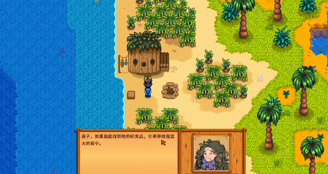 海盗妻子的幽灵任务是一个需要按顺序传递物品的线性任务,任务的起始点在姜岛西部沙滩区域,你在那里会遇到一位海盗妻子的幽灵,她会交给你一张老照片,接下来你需要依次前往鹈鹕镇寻找多位村民传递不同的物品,这个任务链条通常包括将盐带给肯特、将星露谷玫瑰带给格斯、将高级遥控器带给桑迪、将极寒碎片带给乔治、将大蚯蚓带给法师、最后将项链带给威利,当你完成了这一系列物品传递后,会得到一条海盗项链,你需要将它带回姜岛交还给海盗妻子的幽灵,成功完成任务后你将获得5个金核桃以及仙尘的配方作为奖励。