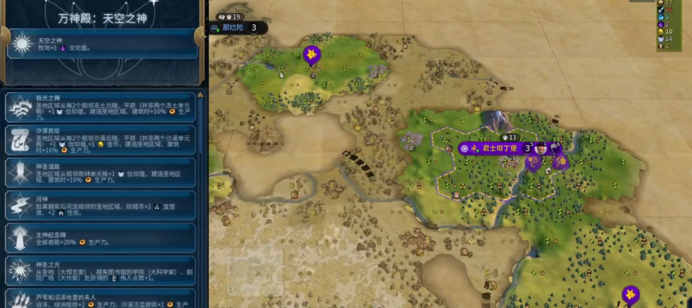 如果你的目标是较为和平的文化或科技胜利,走种田发育路线,那么神圣之光几乎是首选的万神殿。这个效果能让你的圣地、拥有图书馆的学院以及拥有古罗马剧场的剧院广场产出的