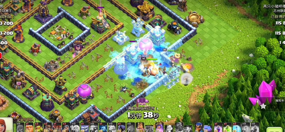 地狱塔、天鹰火炮、X连弩作为顶级单体与范围防御,优先级高于所有其他建筑,单头地狱塔可快速融化高血量前排,多头地狱塔克制人海流派,天鹰火炮对大部队造成大范围高额伤害,X连弩兼顾对空对地持续输出,这些建筑一旦留存会持续瓦解进攻阵型,需用冰冻法术限制输出,配合主力部队快速集火摧毁。防空火箭、空气炮、法师塔、炸弹塔紧随其后,空军流派必须优先清除防空火箭与空气炮,防止空中部队被快速击落,地面流派则重点处理法师塔与炸弹塔,这类范围伤害建筑对野蛮人、弓箭手等小额兵力克制极强,清理后可大幅减少人海部队损耗,为后续推进扫清障碍。