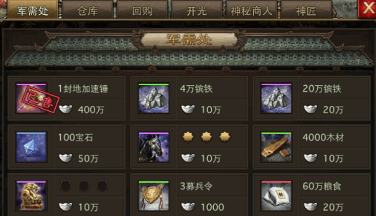 百炼钢作为高级钢资源,是解锁神兵系统的唯一材料,当六个常规兵器均达到满级后,神兵功能自动开启,此时常规镔铁无法再用于兵器进阶,只能依靠百炼钢进行神兵的锻造与升级。神兵系统能为武将提供巨额的属性加成,不仅大幅提升攻击、防御、血量等基础战力,还能解锁专属的神兵技能,让武将在战斗中触发额外伤害、护盾、控制等特殊效果,是后期突破战力天花板、应对高难度国战与跨服玩法的核心保障。百炼钢还可用于装备的高级洗练与精炼,能重置装备属性、提升属性上限,让核心武将的装备达到极致完美状态,进一步放大部队的整体作战能力。