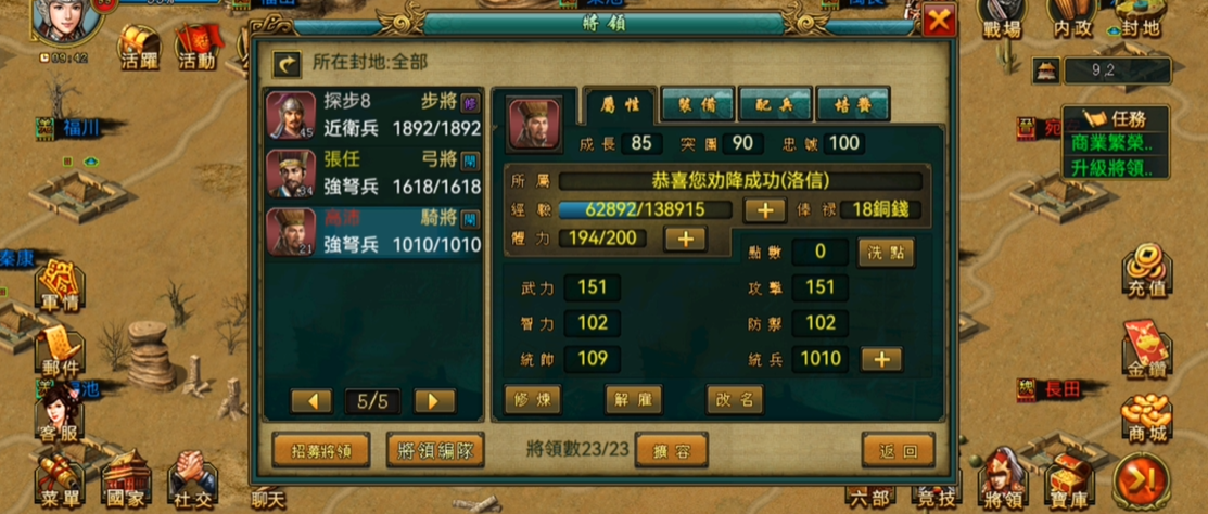实战排兵时,梁兴所在的弓兵部队需搭配重步兵或盾兵在前排抗伤,形成“盾兵+弓兵”的基础组合,利用步兵克制弓兵、弓兵克制骑兵的兵种规则,有效抵御敌方骑兵突袭。战斗中可选择最优攻击模式,让其优先锁定敌方脆弱的远程单位与后排将领,快速削减敌方输出能力;面对多波敌军时,切换剿灭攻击模式,针对损失较大的部队持续打击,加速战斗结束。野地掠夺与小规模战斗中,梁兴可带队快速清场,低战损收割资源;国战与大型推城时,作为后排输出主力,配合投石车、战车等攻城单位,持续消耗城防与守军兵力,降低前排部队战损。