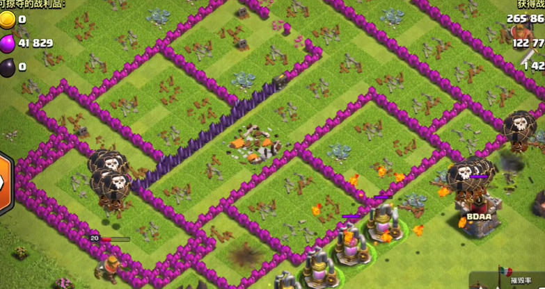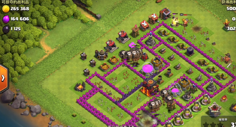 法术搭配以治疗法术为主,狂暴法术为辅,治疗法术优先在巨人被集火、血量下降较快时释放,延长前排承伤时间,狂暴法术则在部队接近核心防御或大本营时使用,快速提升输出效率。遇到单座高伤害防御建筑,可先投放哥布林吸引火力,再用弓箭手集火摧毁,降低主力部队损耗。若敌方有部落援兵,先在基地边缘投放少量野蛮人引出援兵,再用毒药法术配合弓箭手快速清理,避免援兵干扰主力进攻节奏。推进过程中保持部队集中,避免分散被逐个击破,同时逐步清理角落建筑,确保摧毁率稳步提升,避免因遗漏小建筑导致无法达标。
